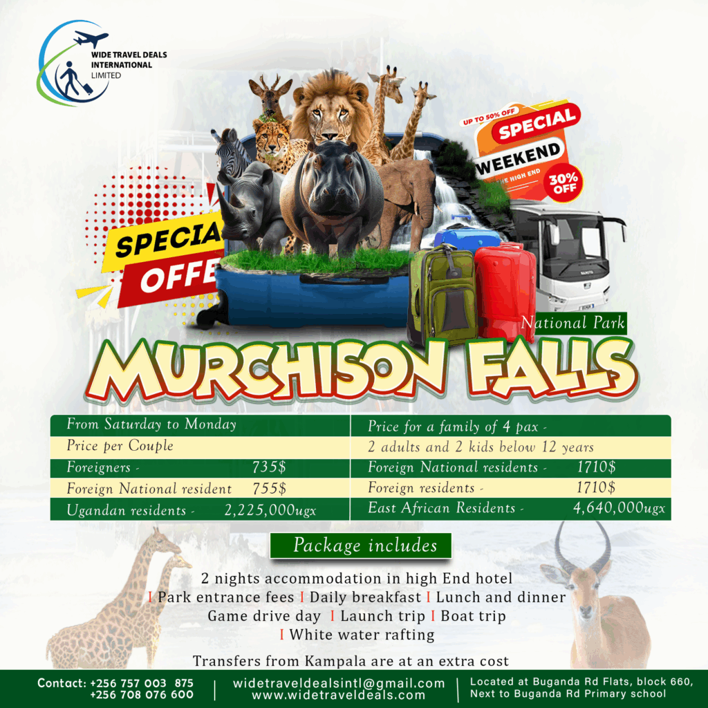 Our luxurious 3-day, 2-night Murchison Falls National Park tour package from Kampala is designed to offer an unparalleled safari experience, combining comfort with thrilling wildlife encounters.